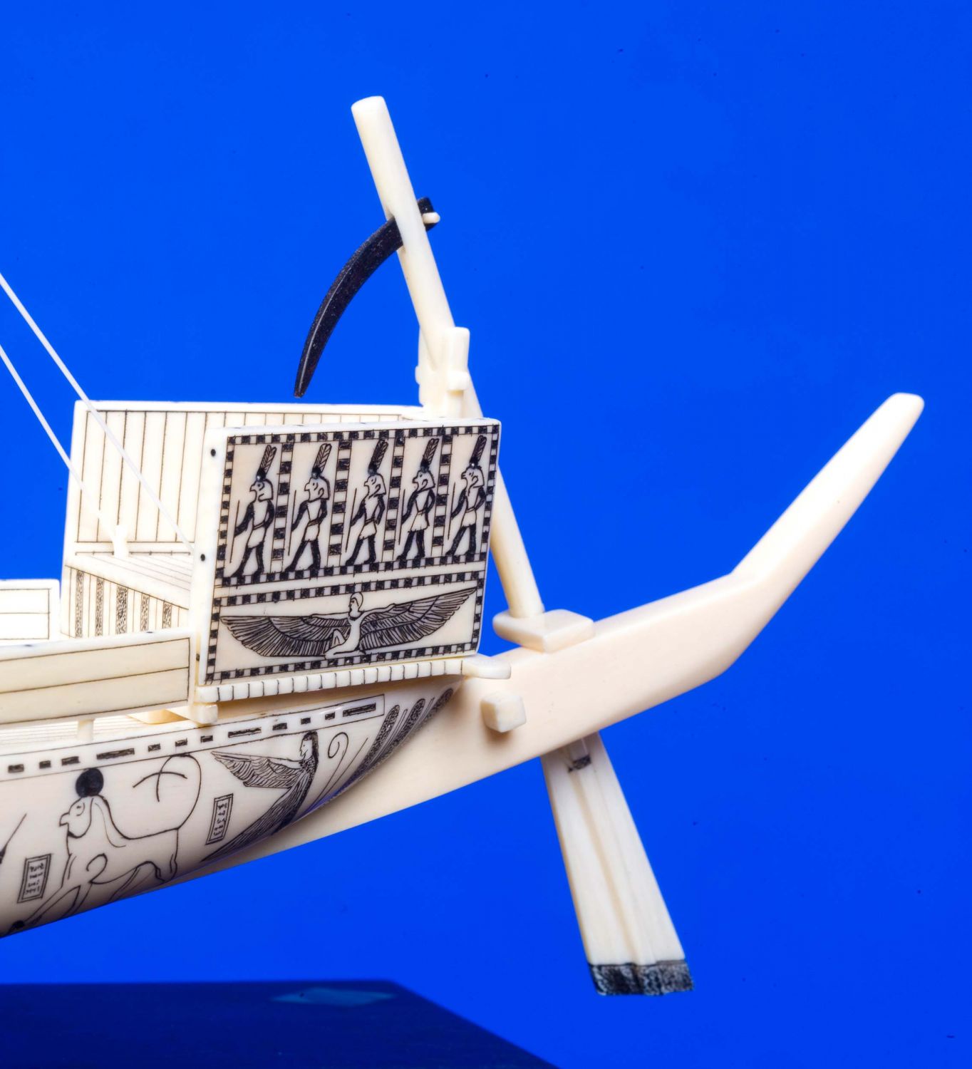 David learned to read blueprints on his own and was quick to convert the metric based plans to his English methodology. David's goal of carving the history of the ship quickly took shape as he entered his twenties. After delving into greater research he soon found himself carving ships from ancient Egypt to those of modern times. It was at this time he decided his future works would be in solid ivory. Scrimshaw, the art of ivory engraving, would be employed to convey deck planking, doors, windows and other details.