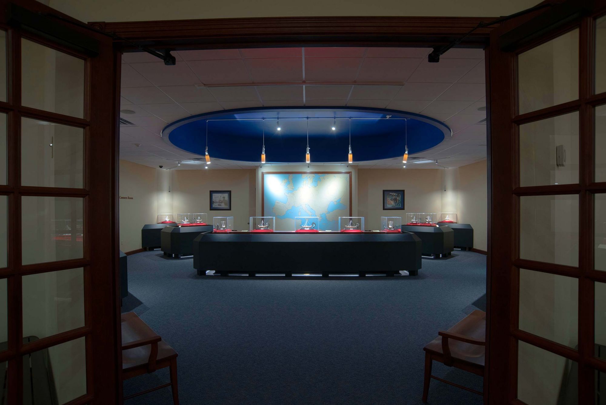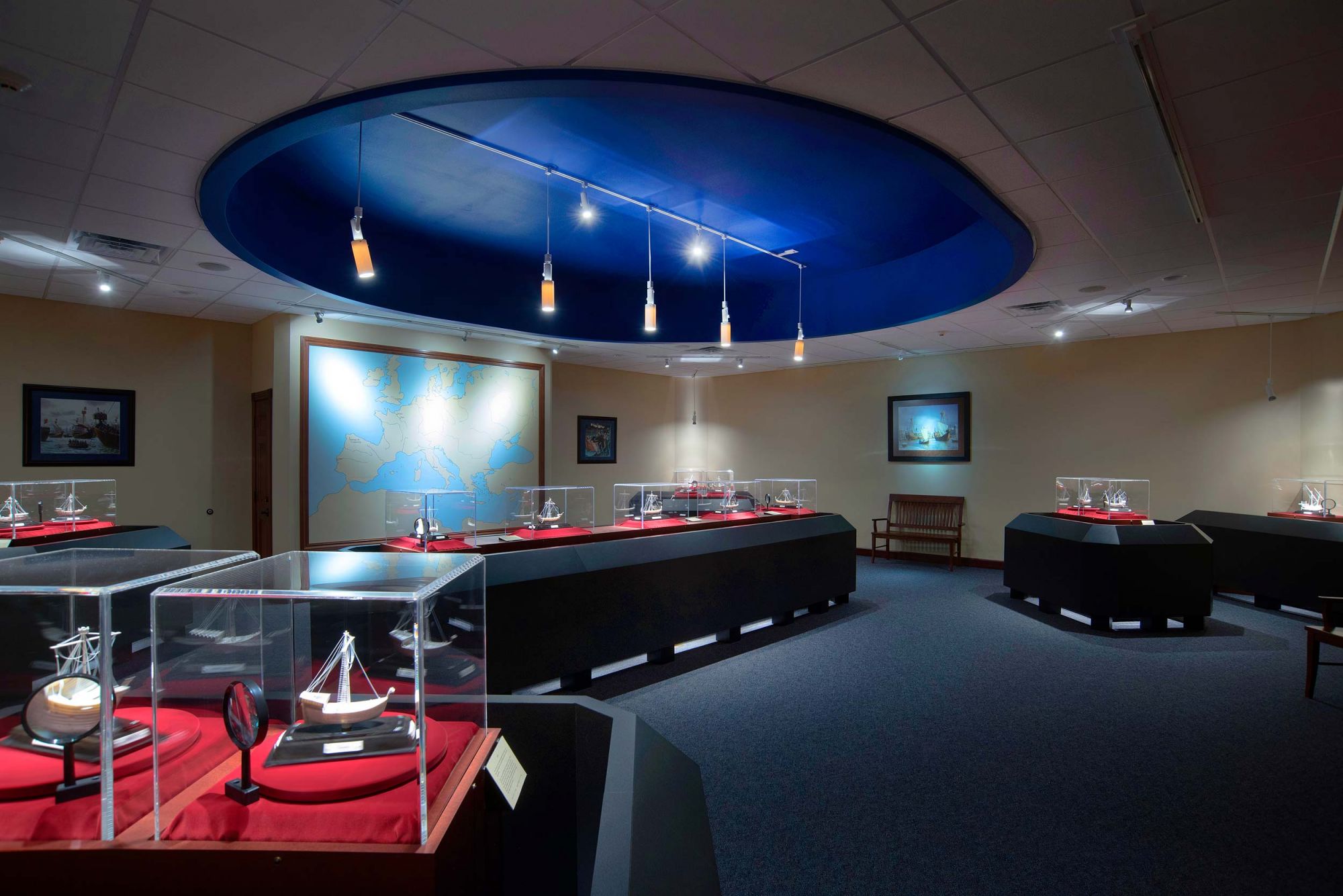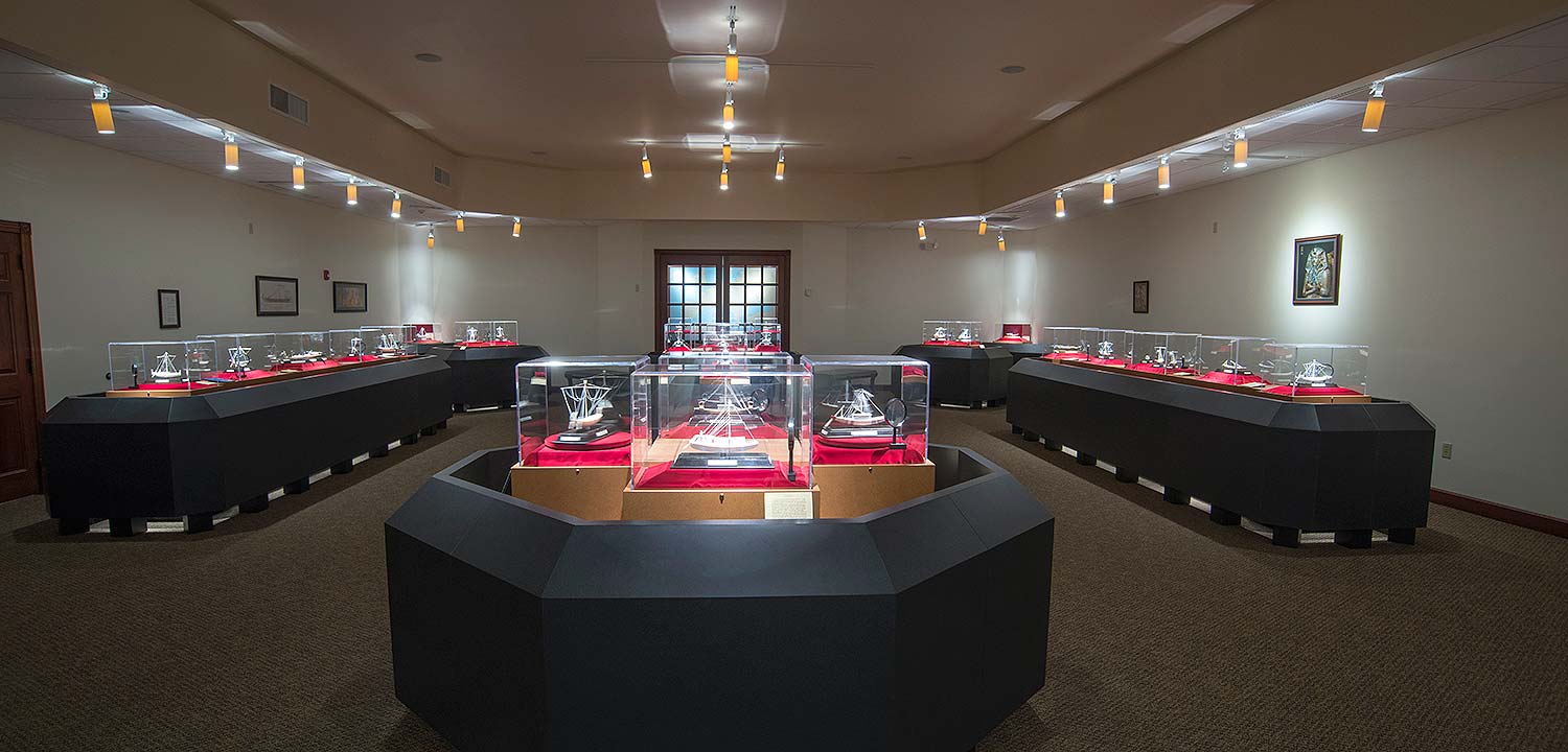 The exhibit consists of 5 spacious rooms dedicated to different eras of shipbuilding. Each room is quite spacious with ample seating for ease and comfort. The Medieval room with its Viking ships is a favorite among visitors as is the Ancient room where ancient Egyptian, Roman, Phoenician and Greek ships convey the story, in David's beautiful art form, of how ships appeared in these early times. Amish and Mennonite guides conduct lively tours of this interesting and highly educational exhibit.