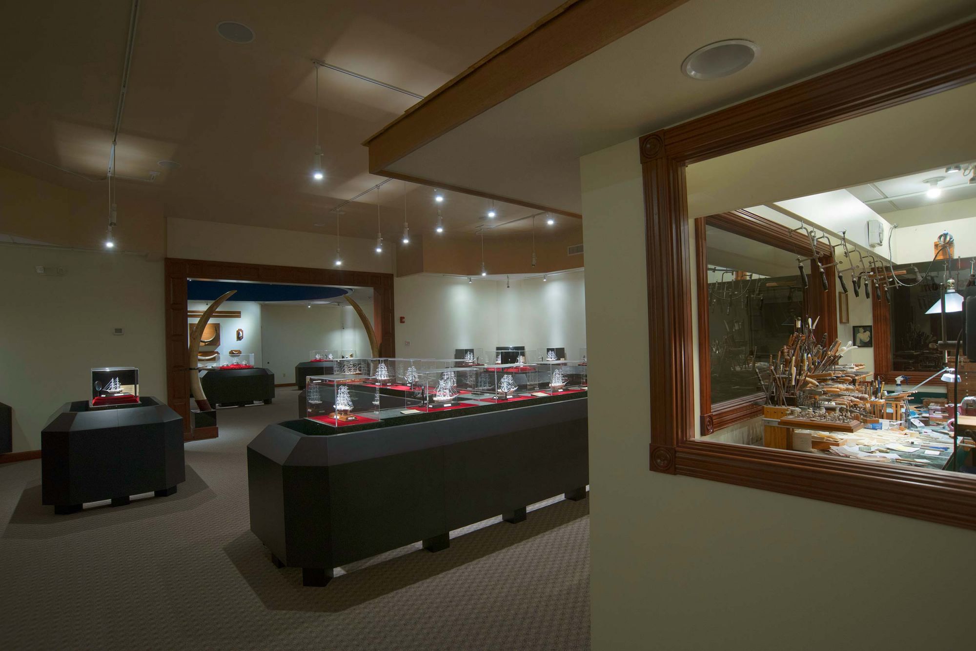 David Warther Carvings is a leading Ohio attraction located in the center of Ohio's Amish community. The exhibit features over 90 carvings made by David Warther, a 5th generation carver of Swiss heritage who works daily in his on-site workshop where he regularly demonstrates carving techniques and tools including his hand filing and sanding method of making the ivory rigging lines. The carvings created by Warther depict the "History of the Ship" from 1st Dynasty Egypt to the present day. Our carver works with old legal estate elephant tusks that are donated to the museum from estate collections in the United States. Created in miniature from these legal estate elephant tusks and ebony wood the details include intricate scrimshaw engraving and finely carved ivory rigging lines that measure just twice the thickness of a human hair.