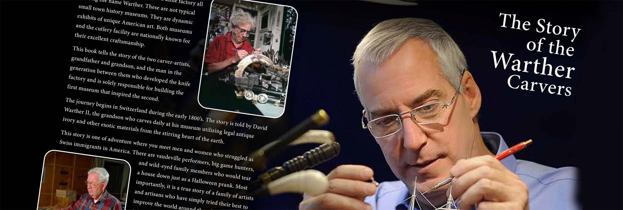 The journey begins in Switzerland during the early 1800’s. The story is told by David Warther II, the grandson who carves daily at his museum utilizing legal antique ivory and other exotic materials from the stirring heart of the earth.